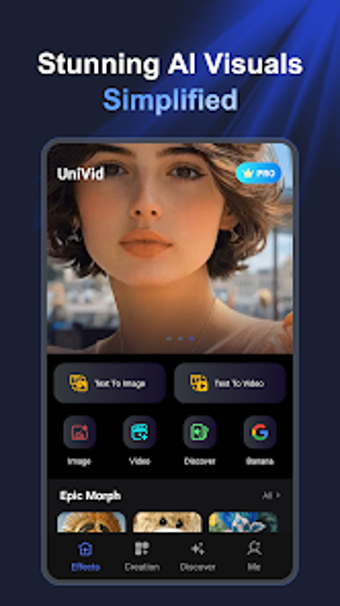 UniVid เป็นเครื่องสร้างงานศิลปะ AI ที่หลากหลายและเครื่องทำวิดีโอที่ออกแบบมาสำหรับผู้ใช้ Android โดยมีชุดเครื่องมือสร้างสรรค์ที่ครอบคลุม แอปพลิเคชันนี้ช่วยให้ผู้ใช้สามารถสร้างภาพที่น่าทึ่งโดยใช้ความสามารถในการแปลงข้อความเป็นภาพและภาพเป็นภาพที่ทันสมัย พร้อมกับฟังก์ชันการแปลงข้อความเป็นวิดีโอและภาพเป็นวิดีโอที่สร้างสรรค์ ด้วยอินเทอร์เฟซที่ใช้งานง่าย UniVid มีเป้าหมายที่จะทำให้การสร้างระดับมืออาชีพเข้าถึงได้สำหรับทุกคน ไม่ว่าจะมีทักษะทางศิลปะมากน้อยเพียงใด